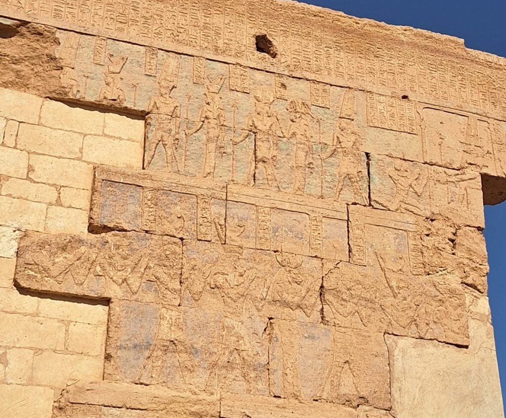 The next small stop is just 5 minutes walking distance. The Umm Ubayd Temple is shrouded in mystery, as it’s true purpose has been lost to time. The main theory is that it is/was connected somehow to Amun Temple. Here you can see some egyptian hieroglyphs from the 30th dynasty, which compared to the Hieroglyphs in the Amun Temple, are much better preserved. Most of the temple though has been destroyed, as parts of it were (no joke) once used to build the local police station. The temples hieroglyphs are of course not comparable to what you can see in other party of Egypt, but yet they are quiet reminder of pharaonic history in the country.