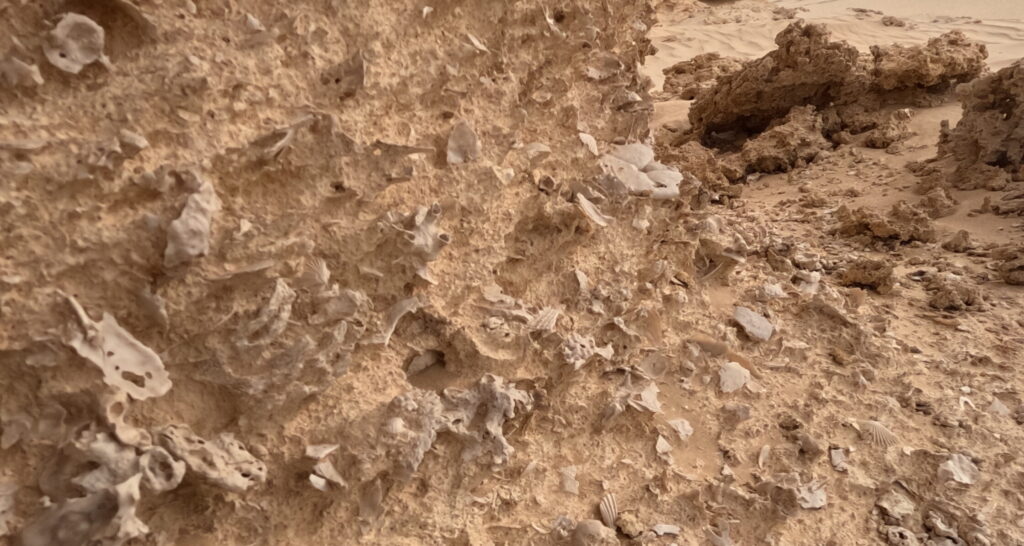 After the lake we continued towards one of the typical table mountain formations, where the driver wanted to show us „fossils„, as he called it. What he meant with that was the huge amount of fossilized mussels and even starfish just laying everywhere on the desert floor. At certain points the rock below the sand lies open exposing these marvelous formations. A truly surreal experience und completely unexpected as we are in the Sahara Desert more than 300 kilometers from the next sea.